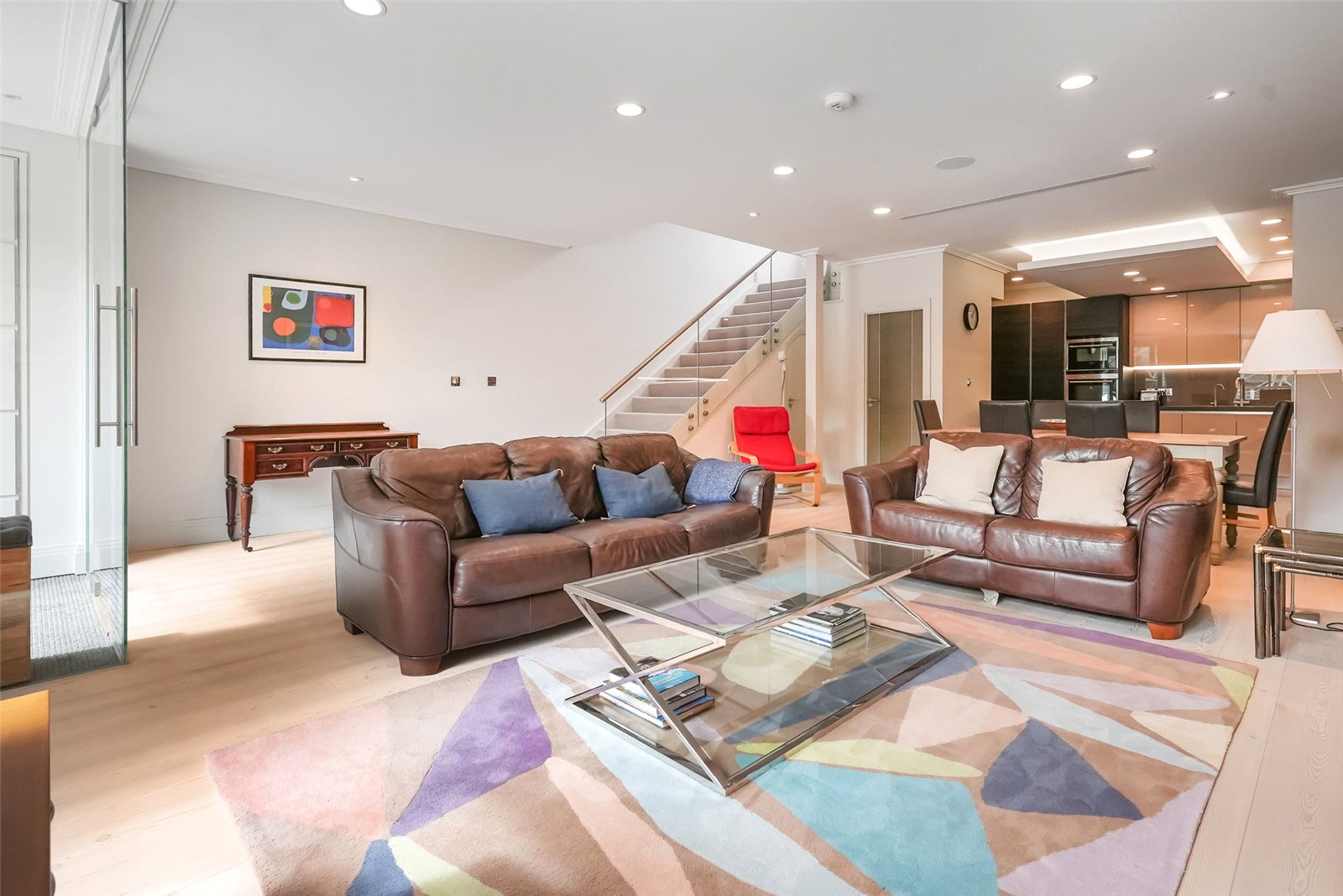 Set within the iconic Globe House, an Art Deco landmark reimagined into eight bespoke houses, this extraordinary over 1400 sq ft freehold home blends timeless architecture with modern design. With floor-to-ceiling windows, this south-west facing, light-filled home is immaculately presented, with the ground floor offering an enclosed glass entrance area, very spacious sitting area, dining area seating 10 comfortably, fully-fitted open plan living kitchen with separate laundry room with extensive built-in storage and separate guest WC. The entire sitting and dining area benefits from an expanse of pale hardwood floor.