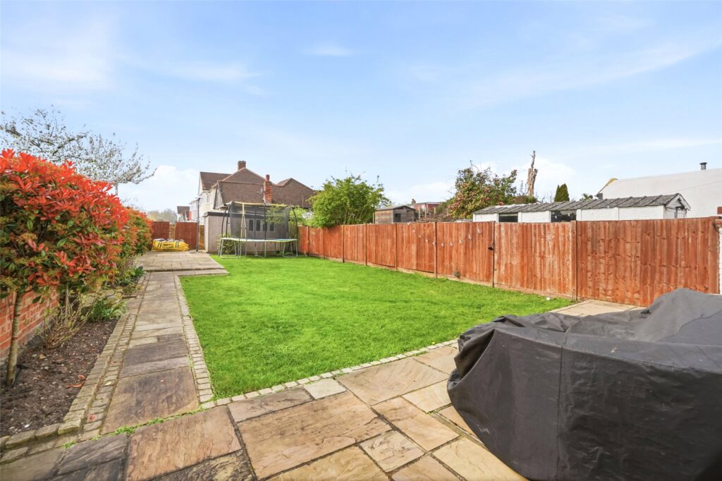 The south west facing rear garden is mainly laid to lawn with a large patio, plus access to the garage.