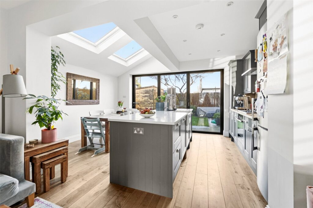 This well-proportioned Victorian terrace has been thoughtfully updated and extended to maximise natural light and living space, creating an irresistible blend of traditional character and modern design. The ground floor features a welcoming reception room with charming period details and leads through to a generous open-plan kitchen/dining/family space — ideal for both relaxed family living and entertaining friends.