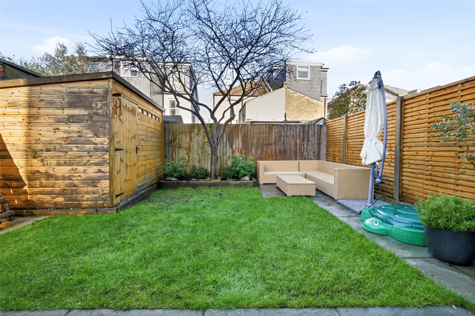 Externally, the property benefits from a lovely private rear garden, perfect for alfresco dining, play and outdoor relaxation. The garden setting also provides scope to enjoy further landscaping subject to planning — typical of this style of home.
