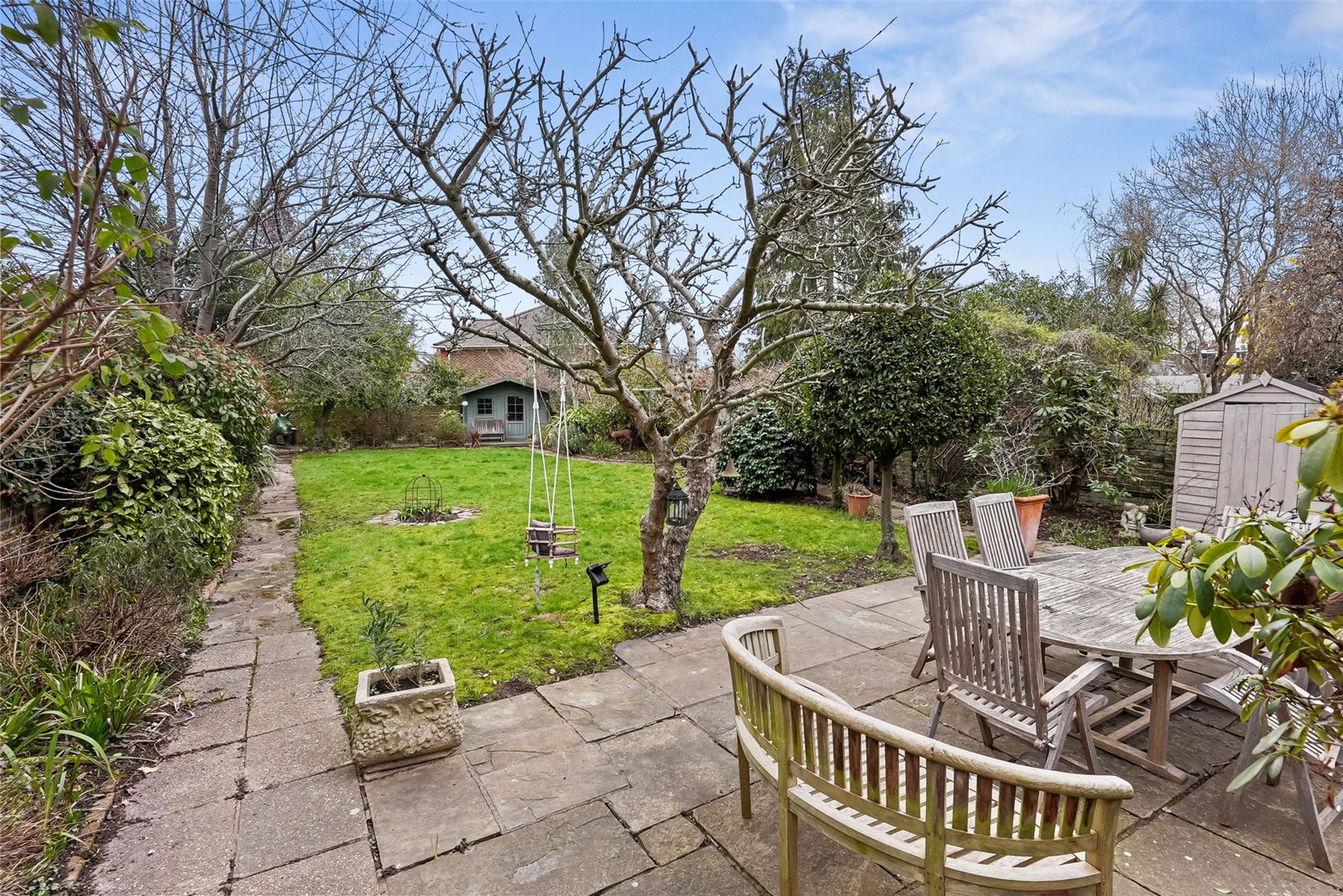 There is accommodation independent for extended family or an au-pair, in the 'Coach House', and a basement level flat that any first-time buyers.. or Teenager would be pleased to secure.