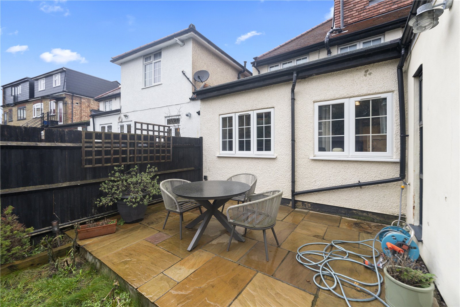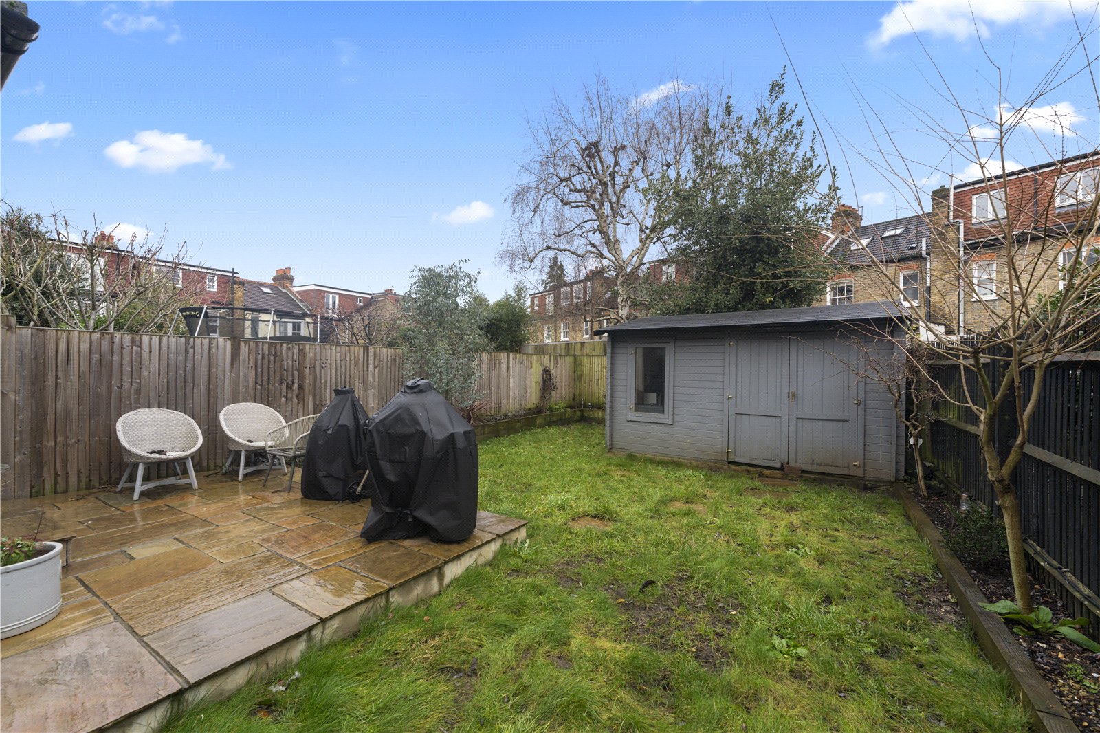 The property also benefits from a well-sized bathroom, an additional WC and excellent storage throughout. To the rear, the private garden is a real standout — large, secluded and complete with a substantial outbuilding, ideal as a home office, gym or studio.