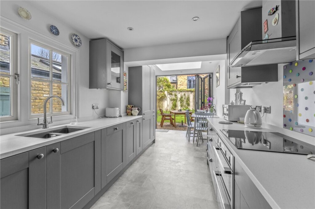 At the front, the property retains a classic double reception room, while to the rear it really opens up. The separate kitchen has been thoughtfully extended and modernised, creating a bright, airy space that feels much larger than expected, with a strong connection to the garden—perfect for everyday living and entertaining.