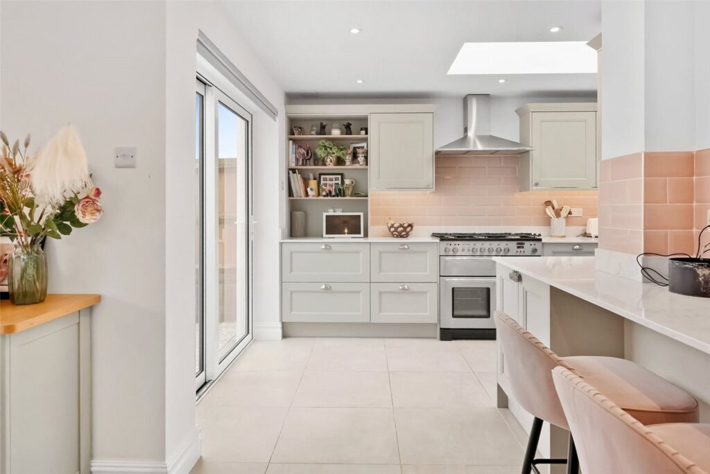 Brimming with style, this immaculate property offers over 1,700 sq ft of beautifully designed living space. From the moment you step inside, this unique home impresses with its vibrant colour palette, sleek finishes, and thoughtful layout. The heart of the home is the spacious open-plan kitchen and living area, flooded with natural light thanks to expansive glass doors that open directly onto the garden – perfect for indoor-outdoor living and entertaining. There are four generously sized bedrooms, including a stylish principal suite with en-suite, and a chic family bathroom. Outside, there is off street parking and the landscaped garden offers both privacy and personality.